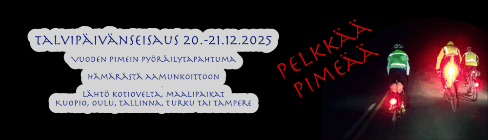 Talvipäivänseisaus-pyöräilyssä voit lähteä matkaan mistä haluat. Minimimatka on 150 km ja matkamittari käynnistyy 20.12.2025 auringon laskiessa maalipaikassasi ja perillä pitää olla viimeistään auringon noustessa sunnuntaina 21.12.